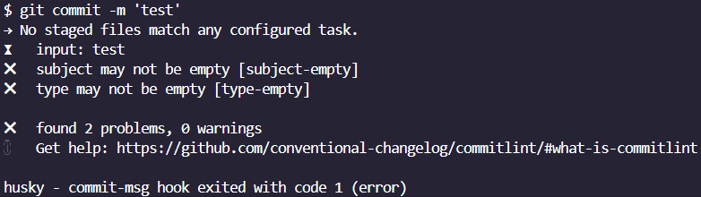 commitlint를 사용하면 실제로 커밋 컨벤션에 어긋나는 커밋 메세지를 사용했을 때, 에러가 나도록 설정할 수 있다.