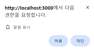 설정을 하고 나면, 다음과 같이 크롬 브라우저에서 알림을 받을건지 묻는 창이 뜬다